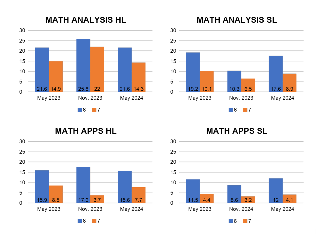 If you’re deciding between Math Analysis and Approaches SL (MAA SL) and Math Applications and Interpretations HL (MAI HL), consider MAA SL if you’re aiming for a 7 in Math. Based on statistics from the May 2023 to May 2024 IB exams, MAA SL has a higher percentage of students scoring 6s and 7s compared to MAI HL. This suggests that MAA SL could be a more strategic choice for students who want to maximize their chances of achieving top scores.
